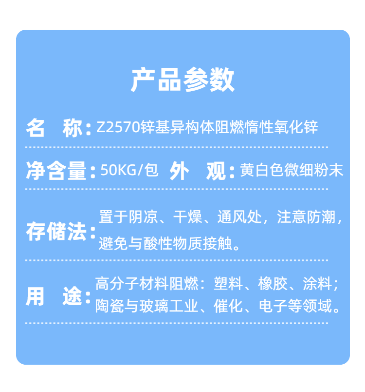 当前位置:首页 >产品中心>Z2570 锌基异构体阻燃惰性氧化锌